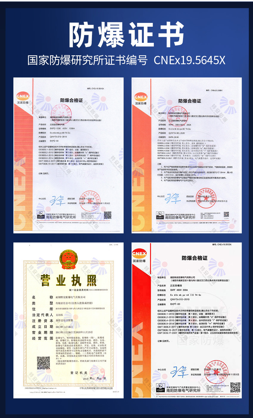 我們的防爆正壓柜取得防爆研究所CNEX防爆合格證,證書編號為CNEX19.5645, 防爆正壓柜適用環(huán)境: