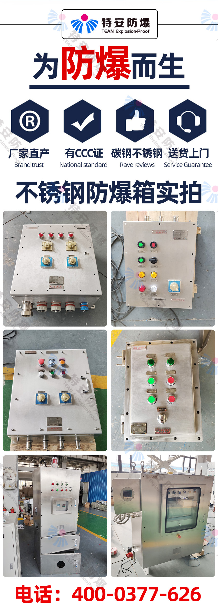 特安防爆專業(yè)生產(chǎn):防爆配電箱,防爆控制箱,防爆電控箱,防爆接線箱,防爆配電柜,防爆電氣控制箱,防爆電氣控制柜等各種防爆箱柜。我們擁有防爆研究所頒發(fā)的CNEX合格證,證書編號(hào)為CNEX19.4124