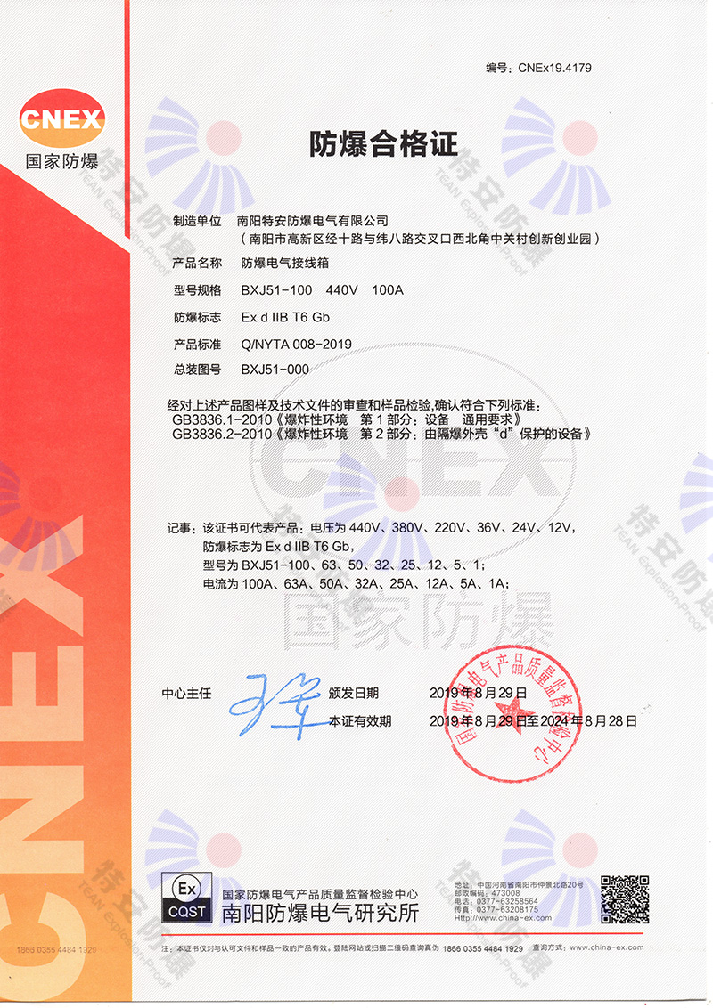 防爆接線箱CNEX合格證 3